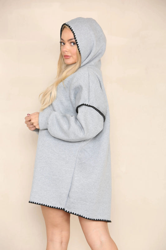 Casual Long Sleeve Drawstring Contrast Trim Loose Hoodie