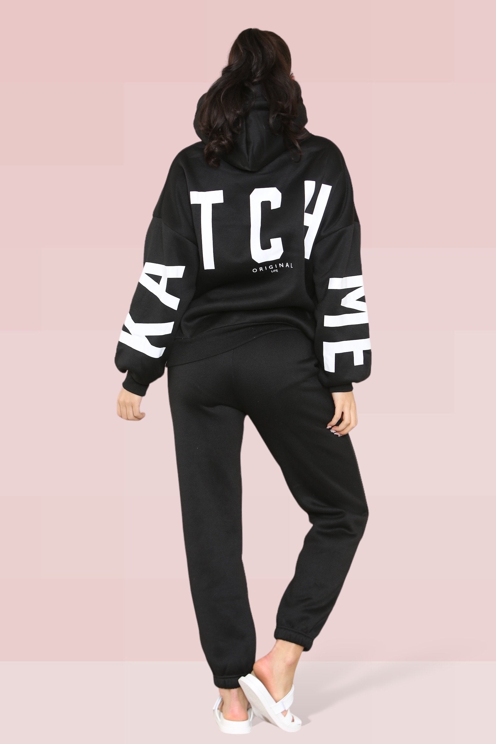 Adorned with eye-catching KATCH ME lettering, this set exudes a stylish flair while maintaining a laid-back vibe. Pair it with your favorite sneakers for an effortless and cozy look that we adore!