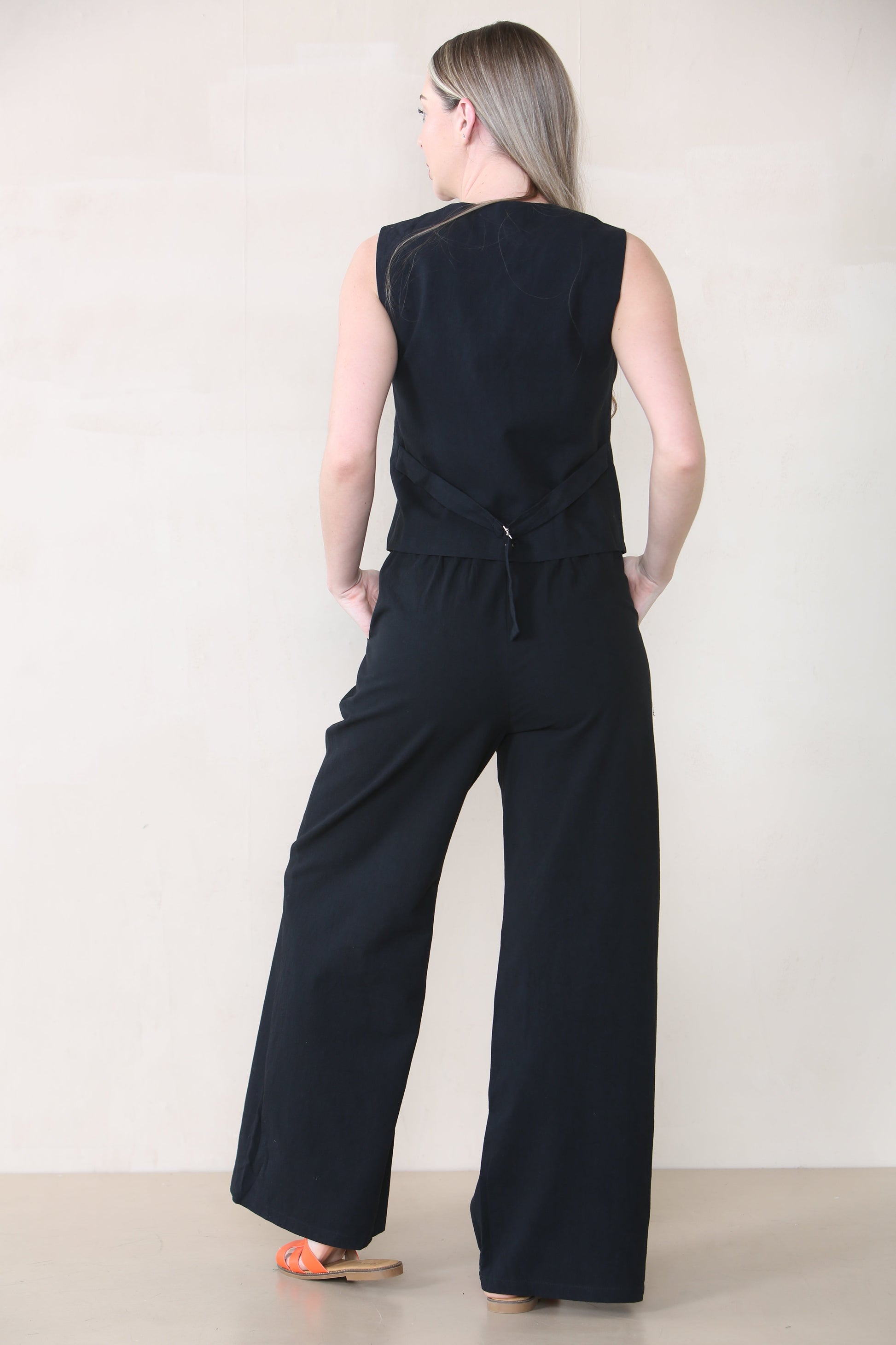 Commuter V Neck Sleeveless Button Top & Wide Leg Trousers Co-ord