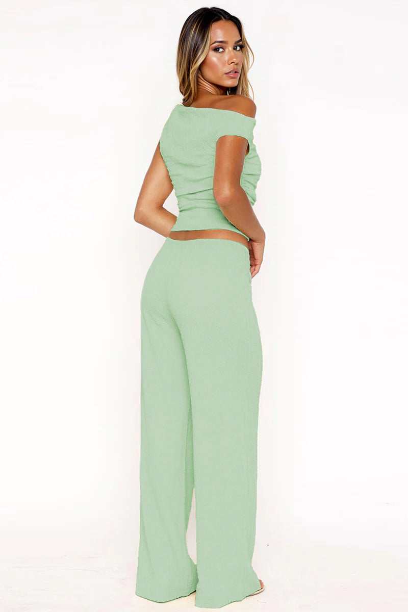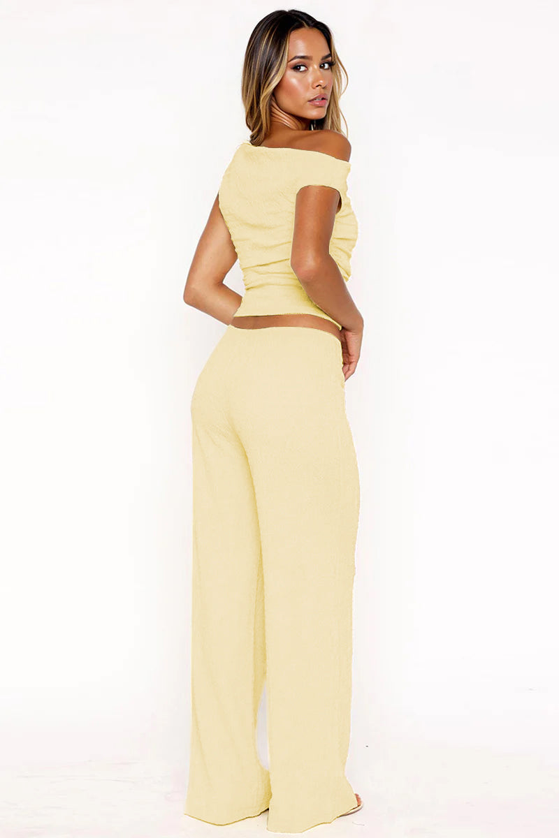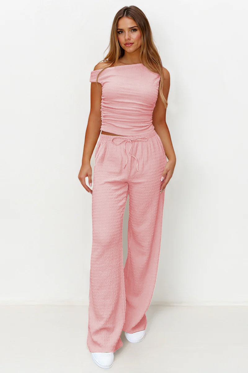 Notch Lapel Cap Sleeve Waist Tie Blazer Top & Wide Leg Trousers Co-ord