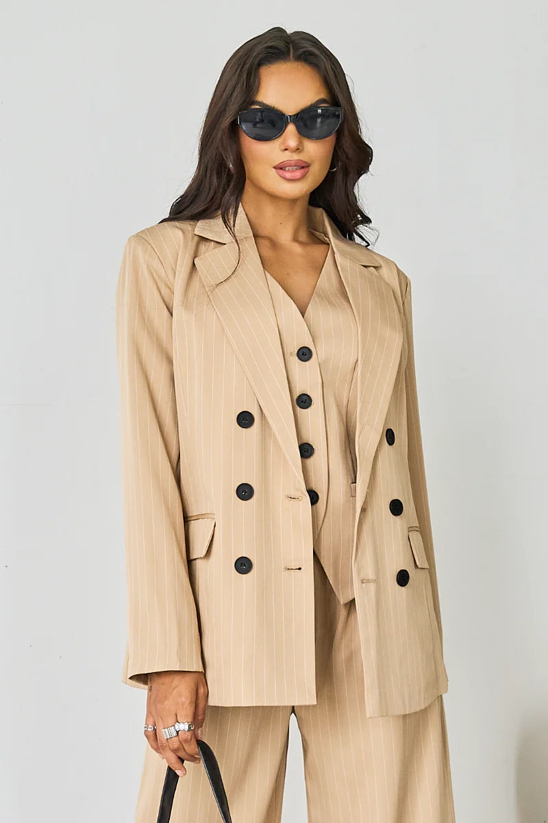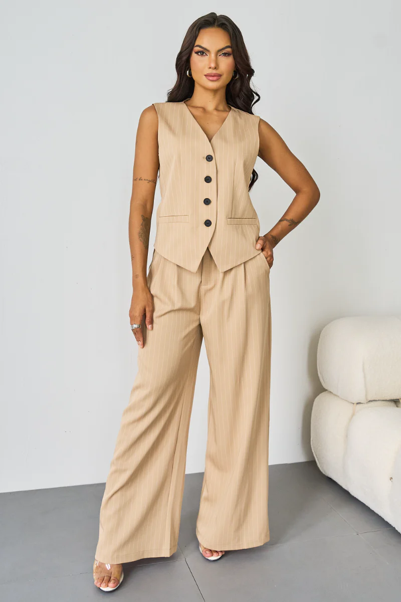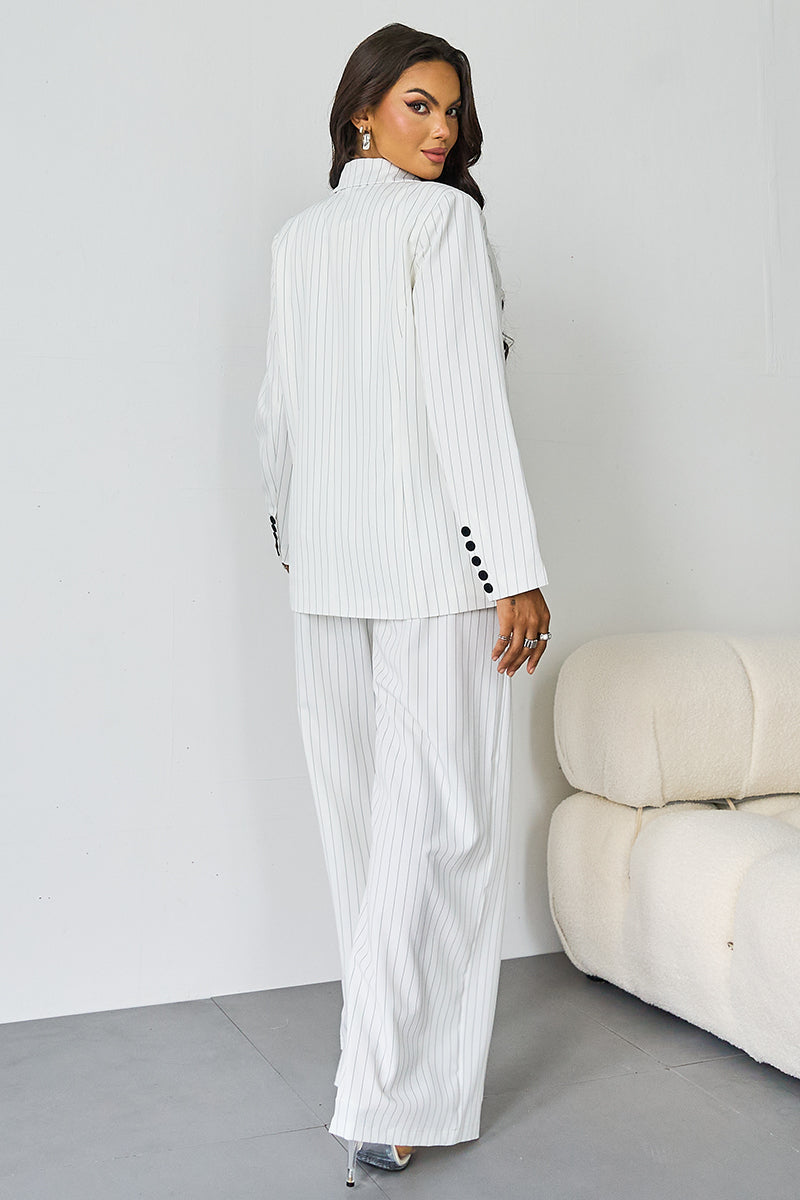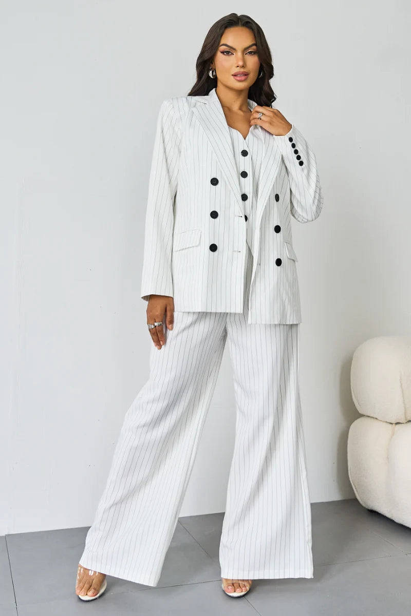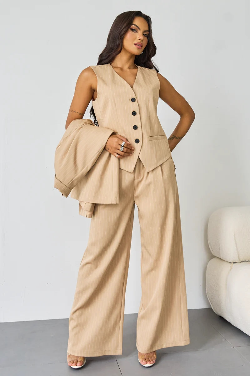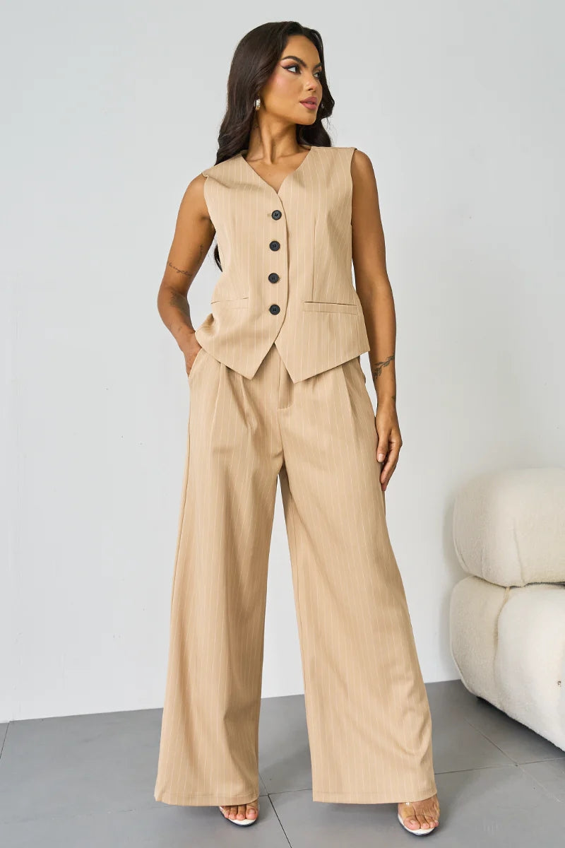 Notch Lapel Cap Sleeve Waist Tie Blazer Top & Wide Leg Trousers Co-ord