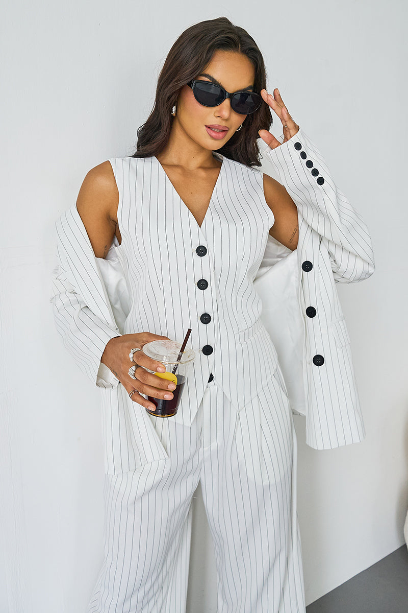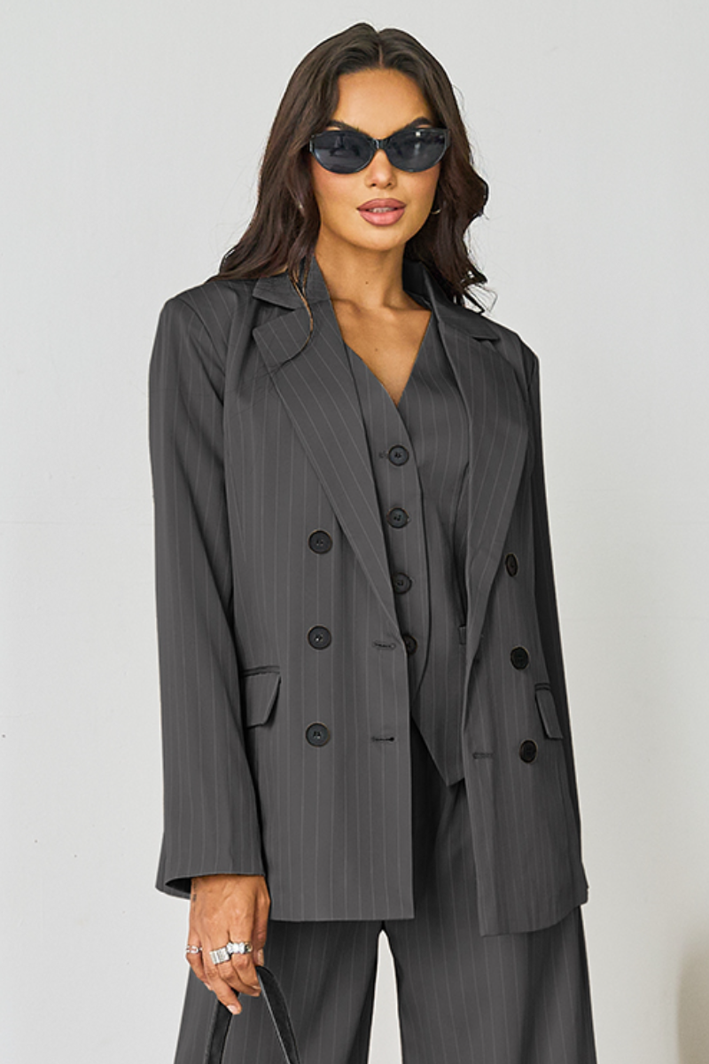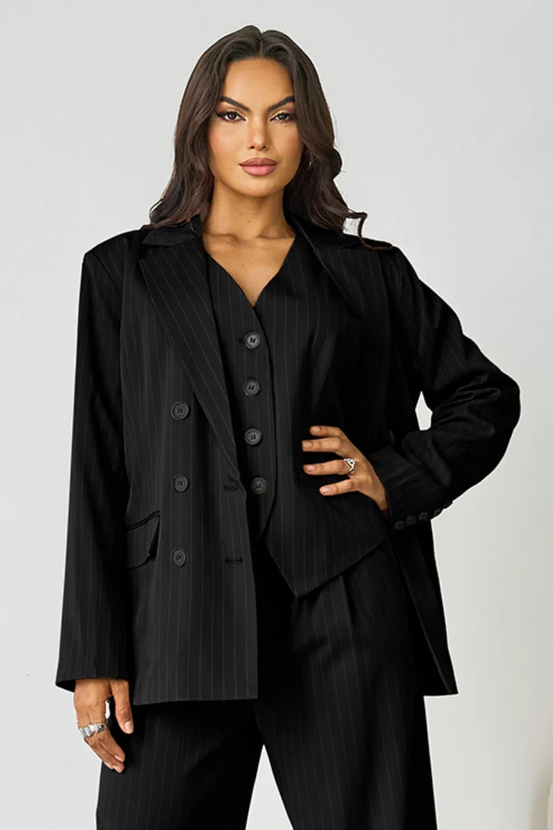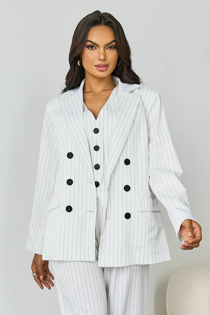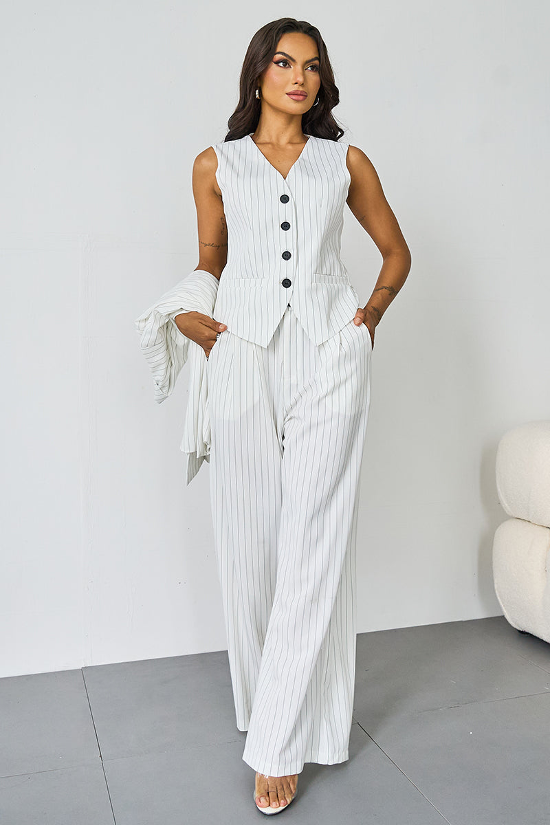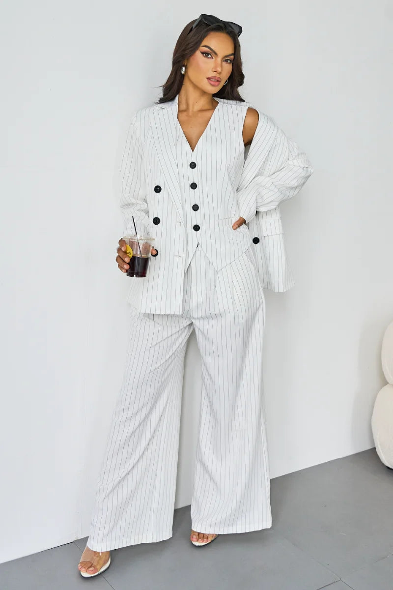 Notch Lapel Cap Sleeve Waist Tie Blazer Top & Wide Leg Trousers Co-ord