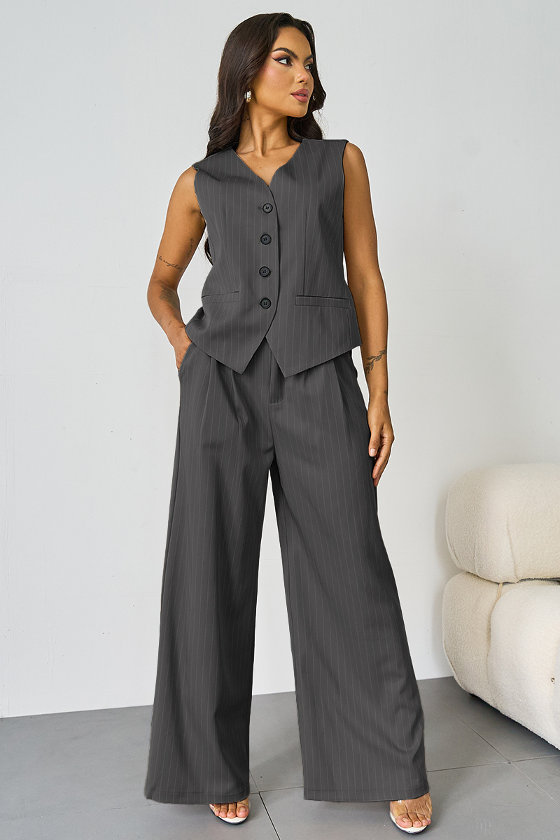 Minimalist Button-Up Tank Top & Drawstring Waist Shorts Co-ord